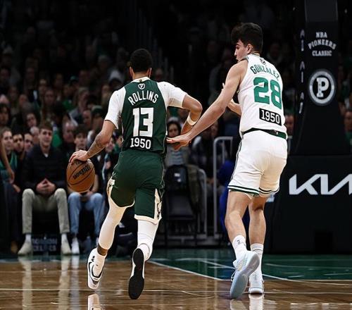 本场比赛中,虽然雄鹿遭遇了一场惨败,但是球队的先发控卫瑞安-罗林斯(Ryan Rollins)也算是尽力了。罗林斯全场出场36分10秒,投篮16中10,三分线外4中3,罚球4中2,得到了全队最高分25分外加6篮板7助攻1抢断的数据,还有3次失误和2次犯规,正负值为-15。罗林斯在进攻端的效率相当突出,他展现出了出色且全面的得分能力,不仅突破和终结能力出色,而且他在外线投篮方面的表现也是值得肯定的。除此之外,罗林斯也是展现出了一定的传球能力和组织能力,他在进攻端的功能非常突出。罗林斯相当于是一个人直接参与了雄鹿超过一半的得分,要不是有他的强势表现,真不知道雄鹿在本场比赛中会输多少分,甚至我们都不知道雄鹿在本场比赛中能得到多少分。